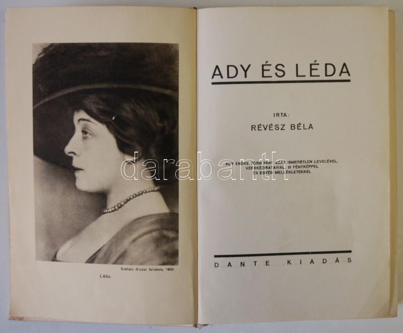 Révész Béla: Ady és Léda. Ady Endre több mint száz ismeretlen levelével, verskézirataival, 21 fényképpel és egyéb mellékletekkel. Bp., Dante (kötés kissé elvált)