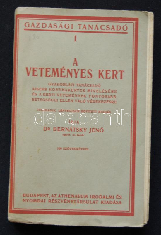 Dr. Bernátsky Jenő: A veteményes kert. (3. lényegesen bővített kiadás)... https://www.darabanth.com/hu/165-Gyorsarveres/165.0/Festmeny-mutargy-papirregiseg-egyeb/Konyvek-Konyha-es-kert~900026/Dr-Bernatsky-Jeno-A-vetemenyes-kert-3-lenyegesen-bovitett-kiadas-Bp-en-Athenaeum~II548634