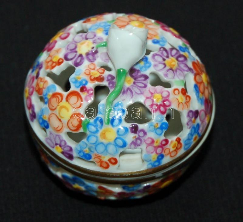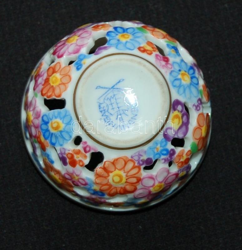 Kézzel festett áttört Herendi porcelán bonbonier virág alakú fogantyúval hibátlan állapotban /