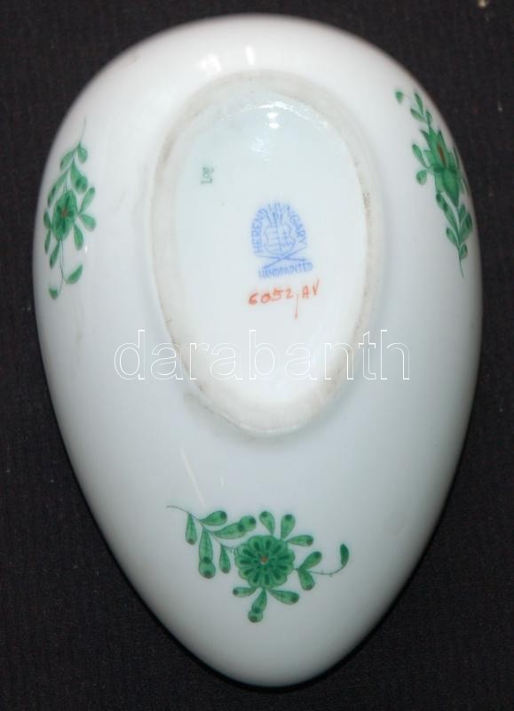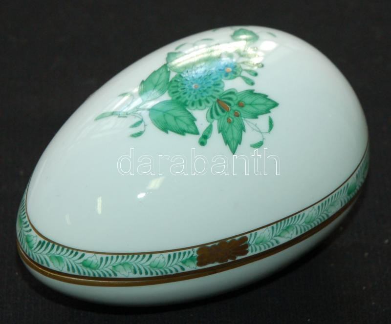 Kézzel festett sorszámozott zöld Apponyi-mintás tojás alakú jelzett Herendi porcelán bonbonier hibátlan állapotban /