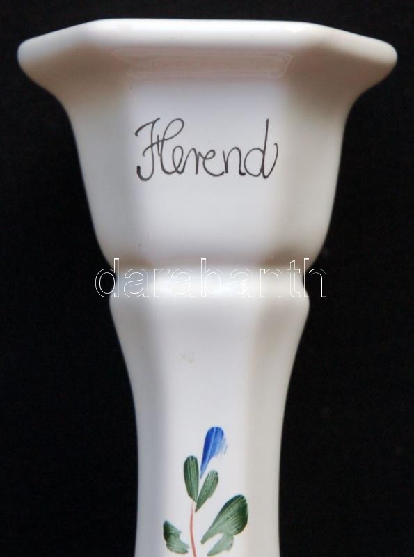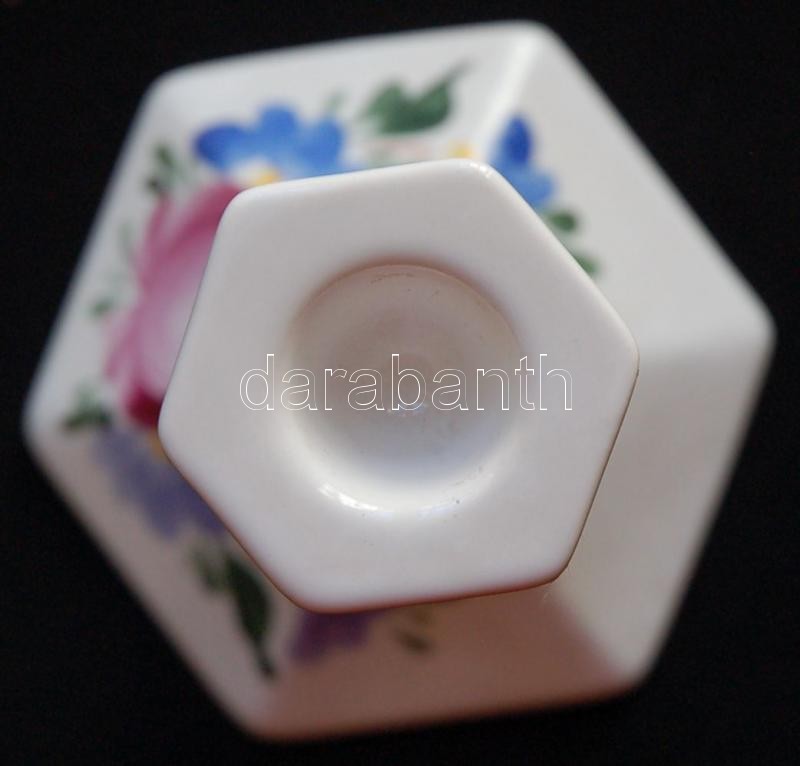 Leírás: Kézzel festett virágokkal díszített jelzett magyar BLS Herendi-emlék porcelán gyertyatartó 12cm