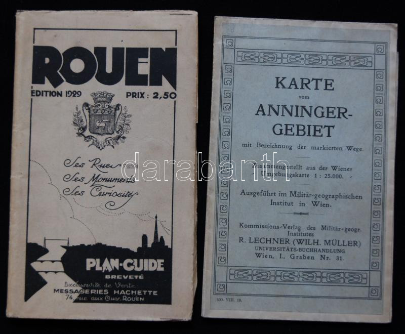 Leírás: 2db klf térkép az 1920-as évekből: Rouen, Anninger-Gebiet