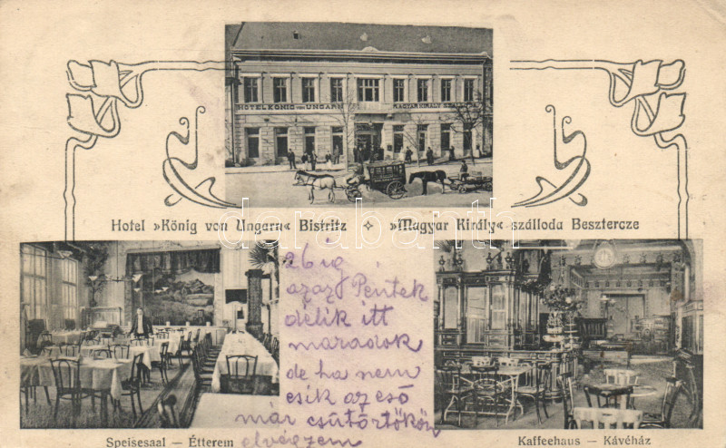 Beszterce 'Magyar Király' Szálloda / Hotel Hungarian King, Restaurant,... https://www.darabanth.com/hu/165-Gyorsarveres/165.0/Kepeslapok/Erdely~1400005/Beszterce-Magyar-Kiraly-Szalloda-Hotel-Hungarian-King-Restaurant-Cafe-EK~II543665
