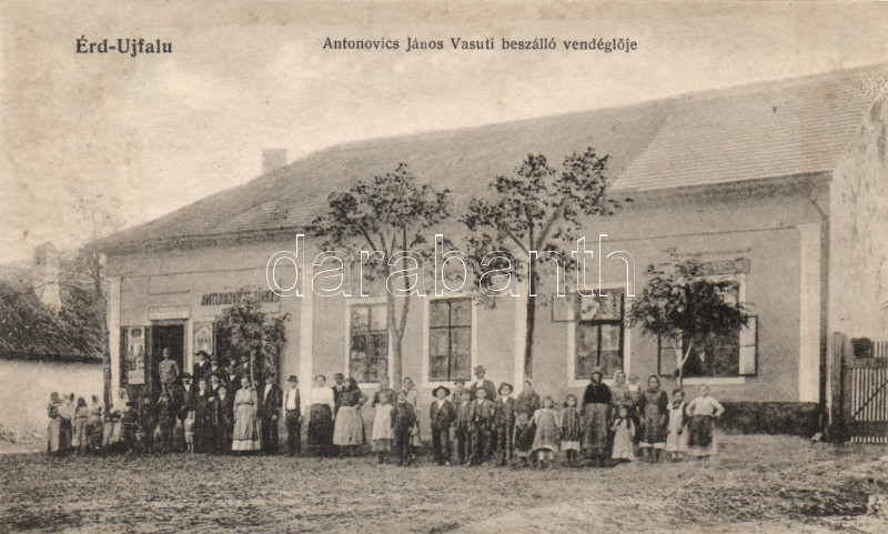 Érd-Újfalu vasútállomás, Antonovics János vasúti beszálló vendéglője https://www.darabanth.com/hu/165-Gyorsarveres/165.0/Kepeslapok/Magyarorszag~1400004/Erd-Ujfalu-vasutallomas-Antonovics-Janos-vasuti-beszallo-vendegloje~II544493