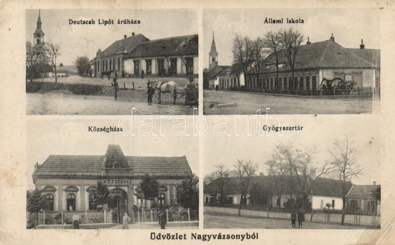 Nagyvázsony Deutsch Lipót áruházával és gyógyszertárral (b) https://www.darabanth.com/hu/165-Gyorsarveres/165.0/Kepeslapok/Magyarorszag~1400004/Nagyvazsony-Deutsch-Lipot-aruhazaval-es-gyogyszertarral-b~II548236