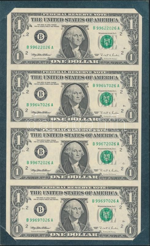 Leírás: Amerikai Egyesült Államok 1995. 1$ "B" függőleges négyes ívben T:I