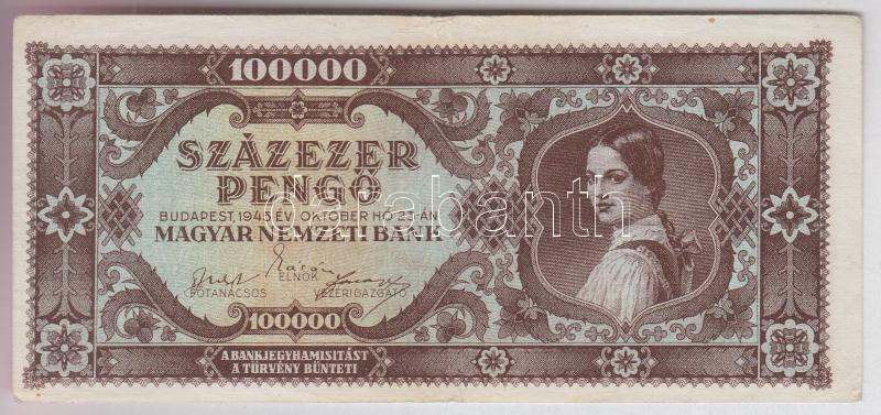 Leírás: 1945. 100.000P (2x) hátlapi színváltozatok (sötét-világosbarna) T:II-