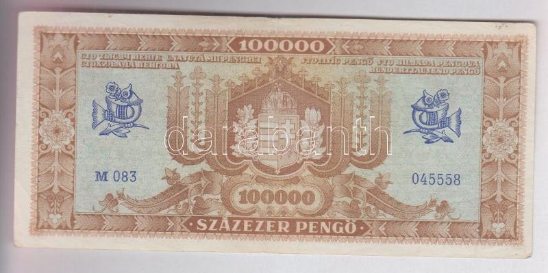 1945. 100.000P (2x) hátlapi színváltozatok (sötét-világosbarna) T:II- https://www.darabanth.com/hu/165-Gyorsarveres/165.0/Numizmatika/Magyar-es-magyar-vonatkozasu-bankjegyek~1400102/1945-100000P-2x-hatlapi-szinvaltozatok-sotet-vilagosbarna-TII-~II530882