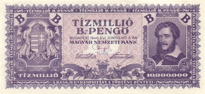 1946. 10.000.000BP T:II(hajtatlan, sarokhajlás) https://www.darabanth.com/hu/165-Gyorsarveres/165.0/Numizmatika/Magyar-es-magyar-vonatkozasu-bankjegyek~1400102/1946-10000000BP-TIIhajtatlan-sarokhajlas~II545811