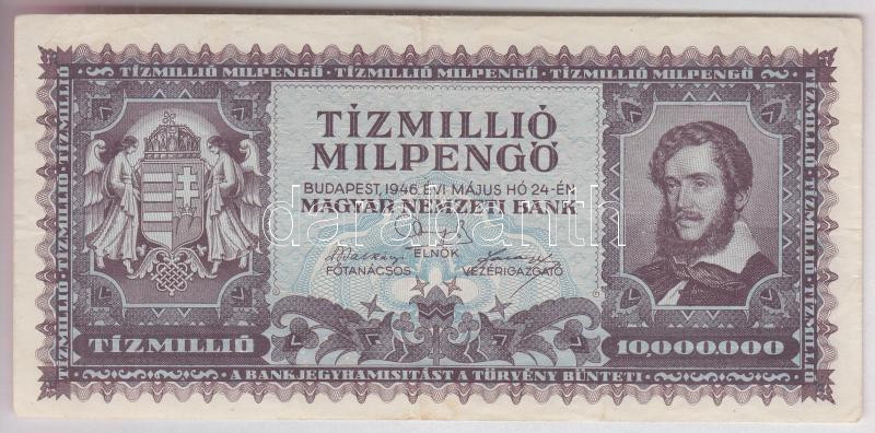 Leírás: 1946. 10.000.000MP hátlapi nyomathibával(színhiány) T:II-