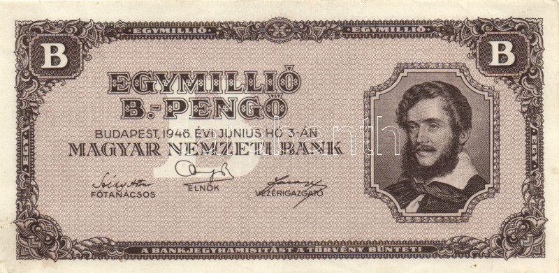 1946. 1.000.000BP T:I- fo. https://www.darabanth.com/hu/165-Gyorsarveres/165.0/Numizmatika/Magyar-es-magyar-vonatkozasu-bankjegyek~1400102/1946-1000000BP-TI-fo~II548683