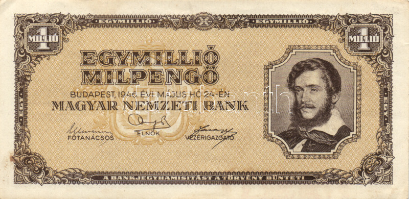 Leírás: 1946. 1.000.000MP (2x) egyik hátoldala nyomdai pöttyökkel tele T:II