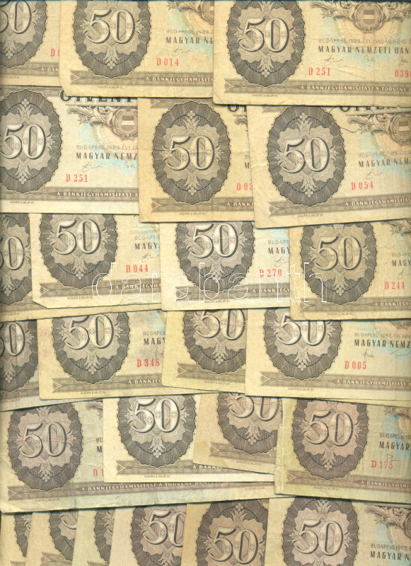 1965-1989. 50Ft (25x) T:III,III- https://www.darabanth.com/hu/165-Gyorsarveres/165.0/Numizmatika/Magyar-es-magyar-vonatkozasu-bankjegyek~1400102/1965-1989-50Ft-25x-TIII-III-~II546590