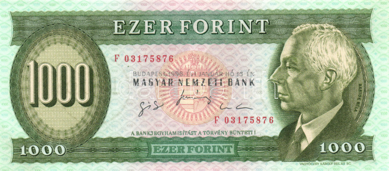 1996. 1000Ft "F" T:I(apró sarokkopás) https://www.darabanth.com/hu/165-Gyorsarveres/165.0/Numizmatika/Magyar-es-magyar-vonatkozasu-bankjegyek~1400102/1996-1000Ft-F-TIapro-sarokkopas~II543539