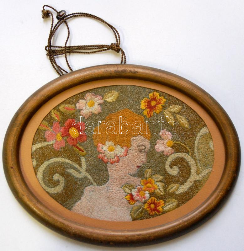 Leírás: cca 1910 Szecessziós gobelin 20x12 cm