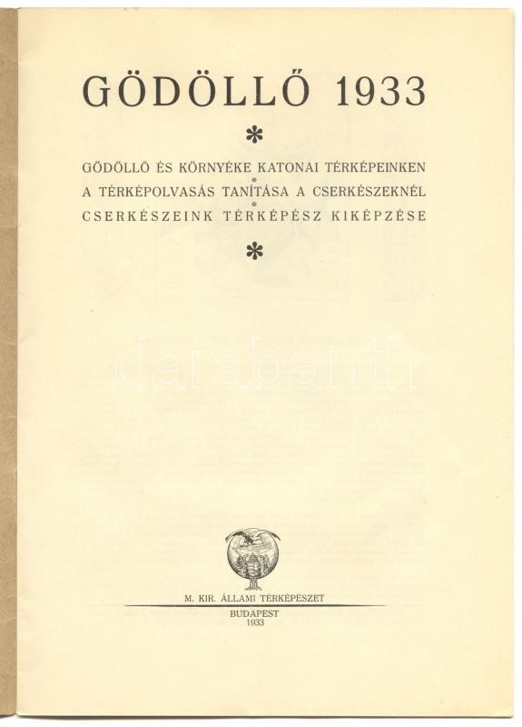 1933 Gödöllő és környéke katonai térképeinken, A térképolvasás tanítása a cserkészeknél, Cserkészeink térképész kiképzése, kiadja a M. Kir. Állami Térképészet