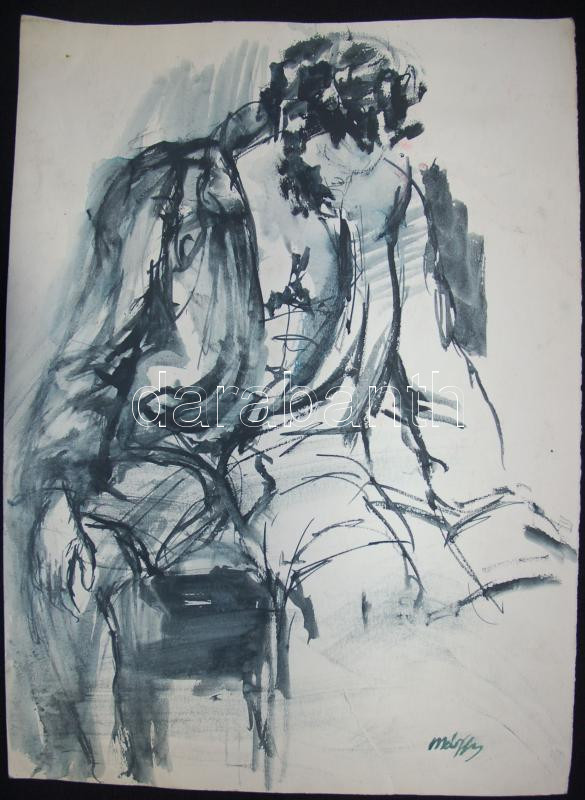Leírás: Márffy jelzéssel:Olvasó férfi, akvarell, papír, kis szakadás alul, 42× 30 cm