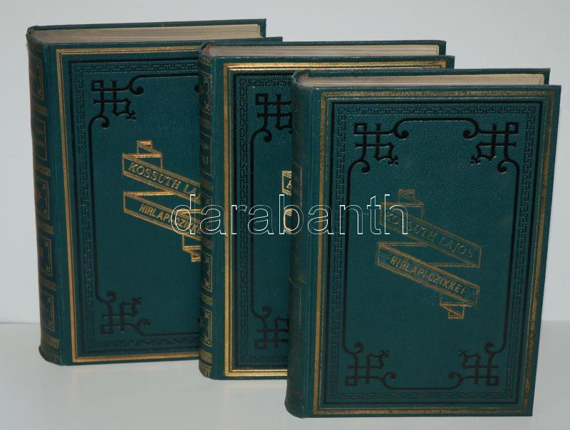Kossuth Lajos iratai 1-13. kötet. Komplett. Sajtó alá rendezte Kossuth Ferencz. A gerincfelirat 1-től 12-ig: Kossuth Lajos iratai, a 11. kötet: Kossuth Lajos beszédei. A 13. kötet: Kossuth Lajos hírlapi czikkei. KOSSUTH Lajos - Kossuth Lajos iratai. Sajtó alá rend. Kossuth Ferenc és Helfy Ignác. 1-13. köt. Bp. 1880-1911. Athenaeum. 12 db. Aranyozott, festett, dombornyomásos kiadói egészvászon-kötésben. 2 kötet gerince kopottabb. Szép állapotú sorozat.