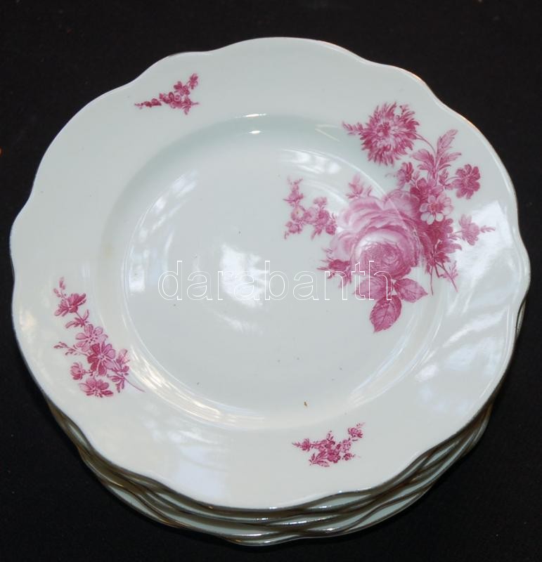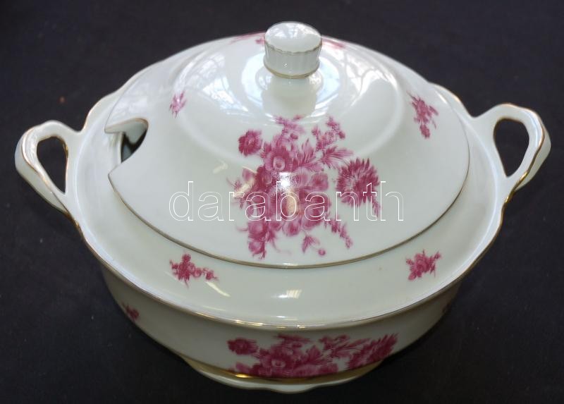 24 darabos komplett kézzel festett sorszámozott virágmintás jelzett Zsolnay porcelán étkészlet hibátlan állapotban tányérokkal, tálakkal, sótartóval, stb. /