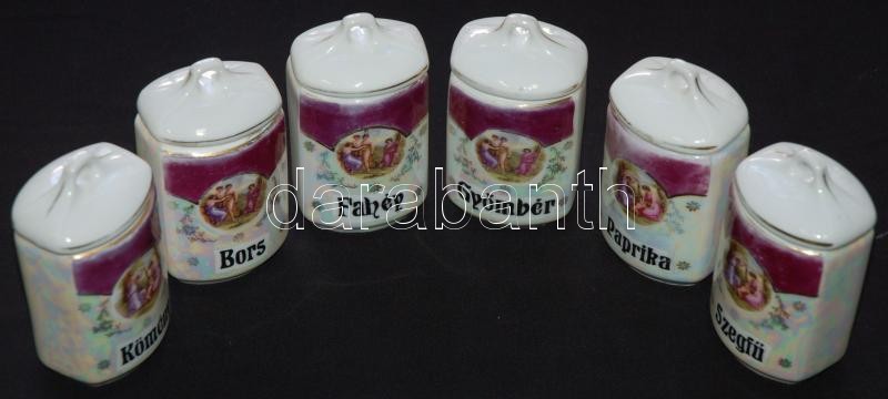 Leírás: Karlsbad csehszlovák porcelán fűszertartó készlet, összesen 15 db,