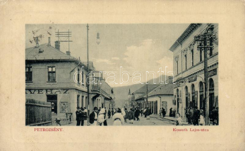 Petrozsény Kossuth street, Café, shops https://www.darabanth.com/hu/166-Gyorsarveres/166.0/Kepeslapok/Erdely~500044/Petrozseny-Kossuth-street-Cafe-shops~II550768
