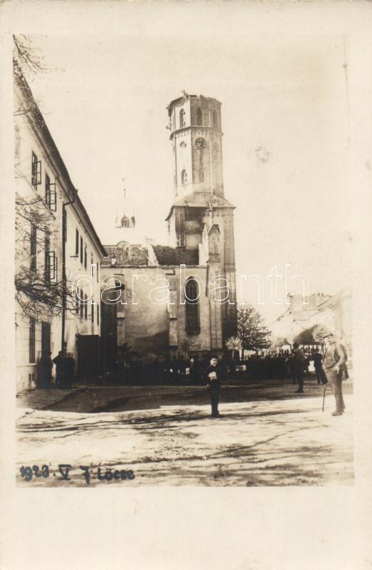 Lőcse damaged church photo https://www.darabanth.com/hu/166-Gyorsarveres/166.0/Kepeslapok/Felvidek~500046/Locse-damaged-church-photo~II549873