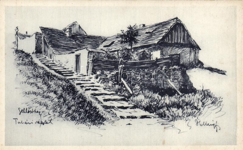 Leírás: Budapest I. Tabán Szent Gellért-hegyi viskók, szignós