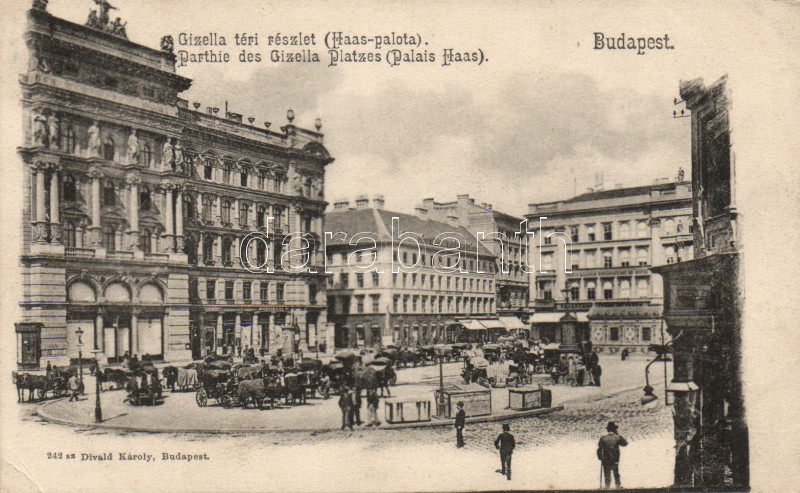 Budapest V. Gizella tér, Haas-palota, Divald (EK) https://www.darabanth.com/hu/166-Gyorsarveres/166.0/Kepeslapok/Magyarorszag~500043/Budapest-V-Gizella-ter-Haas-palota-Divald-EK~II537049