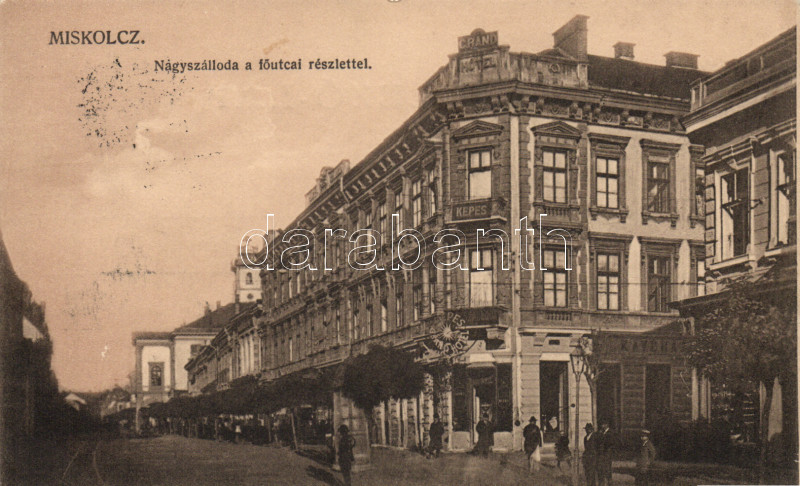 Miskolc Kepes Nagyszálloda, Fő utca, Divald https://www.darabanth.com/hu/166-Gyorsarveres/166.0/Kepeslapok/Magyarorszag~500043/Miskolc-Kepes-Nagyszalloda-Fo-utca-Divald~II537005