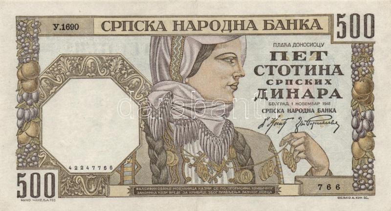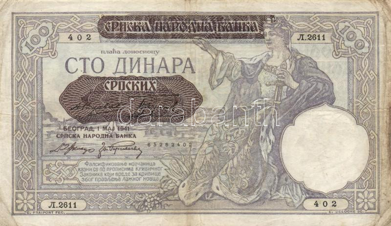 Serbia/German occu... https://www.darabanth.com/hu/166-Gyorsarveres/166.0/Numizmatika/Kulfoldi-bankjegyek~500138/Szerbianemet-megszallas-1941-100D-plus-500D-TIII-II-3Cbr3ESerbiaGerman-occupation-1941-100-Dinar~II503700