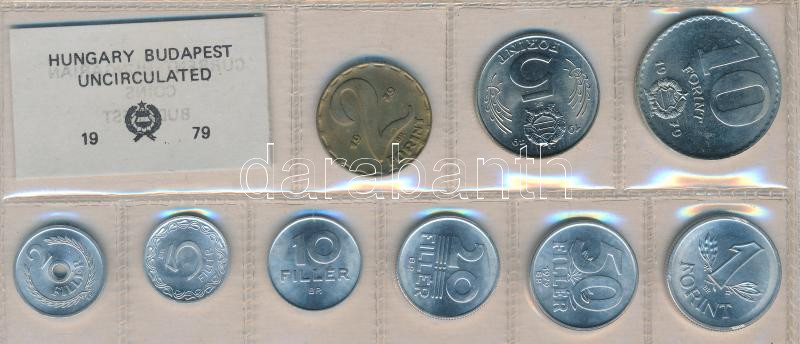 Leírás: 1979. 2f-10Ft 9db klf érmés forgalmi sor fóliatokban T:1