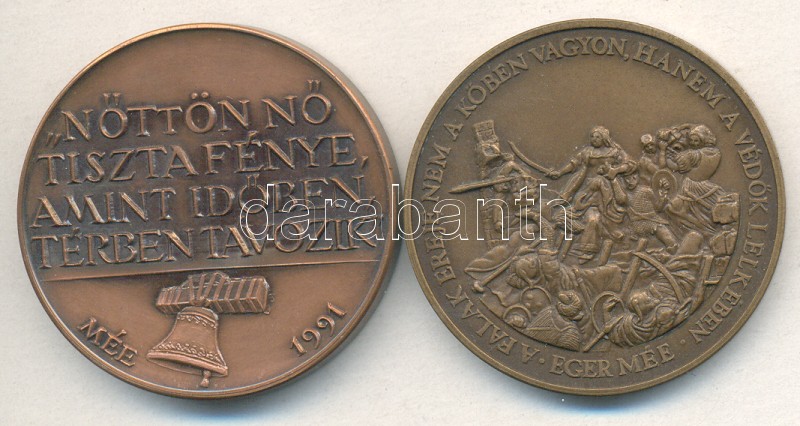 Bognár György (1944-) "MÉE Eger / Gárdonyi Géza 125 éve született" Br emlékérem (42,5mm) T:1 + Nagy István János (1938-) 1991. "MÉE / Gróf Teleki Pál" Br emlékérem (d=42mm) T:1