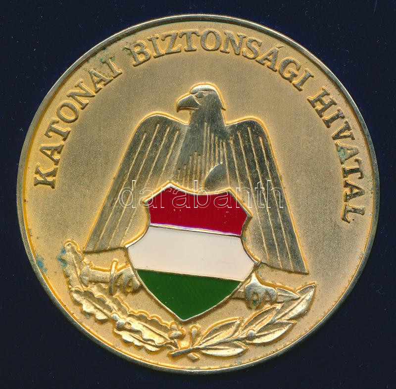 1990. "Katonai Biztonsági Hivatal" aranyozott Br plakett (70mm) díszdo... https://www.darabanth.com/hu/166-Gyorsarveres/166.0/Numizmatika/Militaria~500142/1990-Katonai-Biztonsagi-Hivatal-aranyozott-Br-plakett-70mm-diszdobozban-T2~II501426