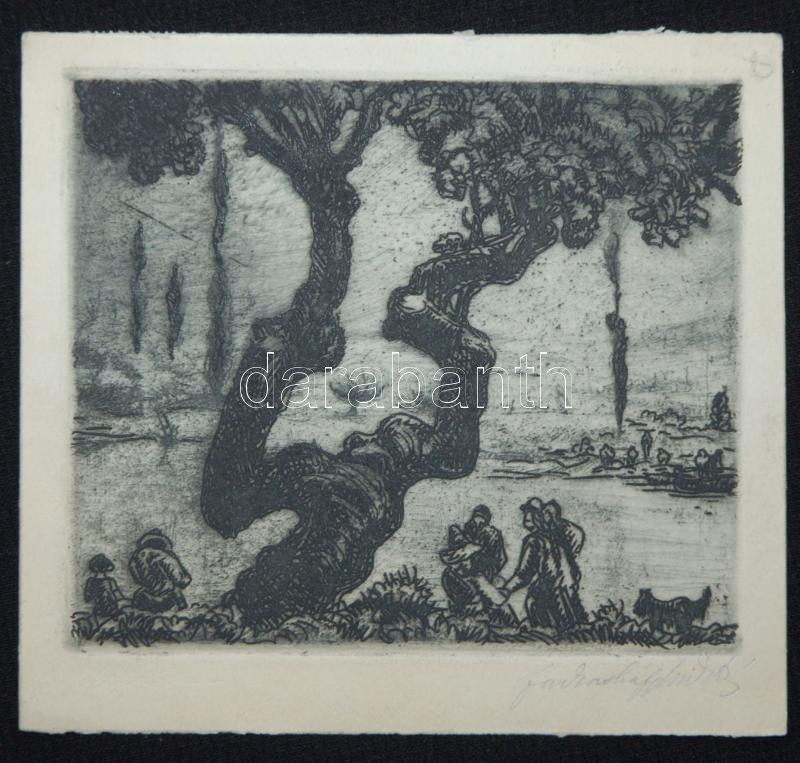 Leírás: Farkasházy Miklós (1895-1964): Cím nélkül, rézkarc, papír, 9×11 cm