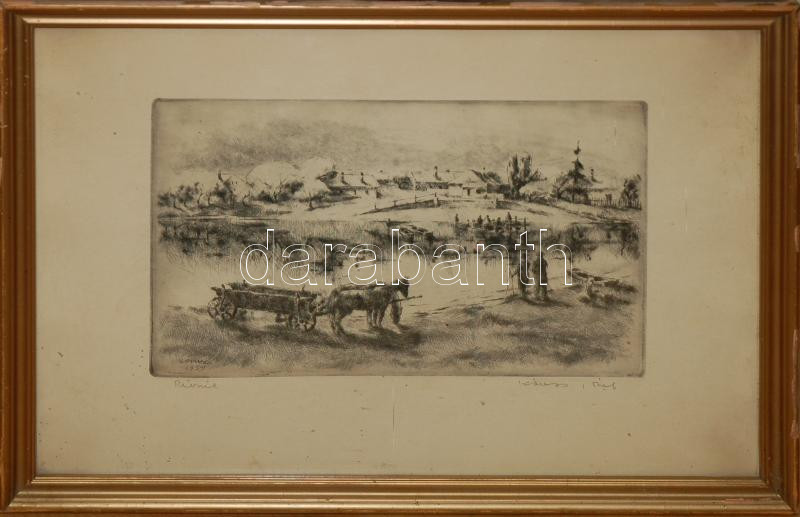 Kórusz József: Révnél (1959), rézkarc, 19×29 cm, üvegezett keretben https://www.darabanth.com/hu/167-Gyorsarveres/167.0/Festmeny-mutargy-papirregiseg-egyeb/Festmenyek-es-grafikak~500017/Korusz-Jozsef-Revnel-1959-rezkarc-19C39729-cm-uvegezett-keretben~II544487