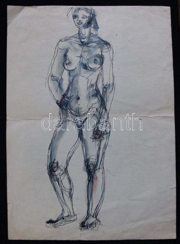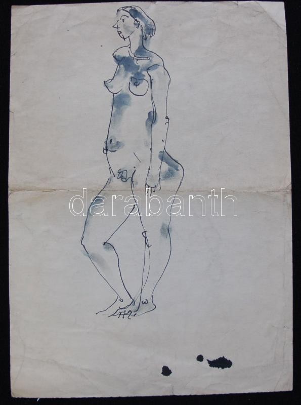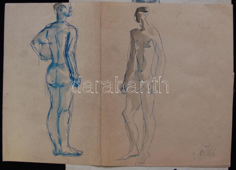 Leírás: Lux Alice (1906-1988): 3 db rajz, akt, női fej, tanulmányrajz, tus, toll, papír 28×20 cm