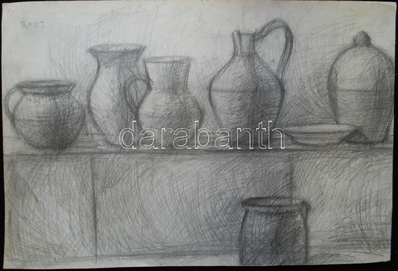 Rozs J. jelzéssel: Tanulmány, grafit, papír, 40x59cm https://www.darabanth.com/hu/167-Gyorsarveres/167.0/Festmeny-mutargy-papirregiseg-egyeb/Festmenyek-es-grafikak~500017/Rozs-J-jelzessel-Tanulmany-grafit-papir-40x59cm~II557367