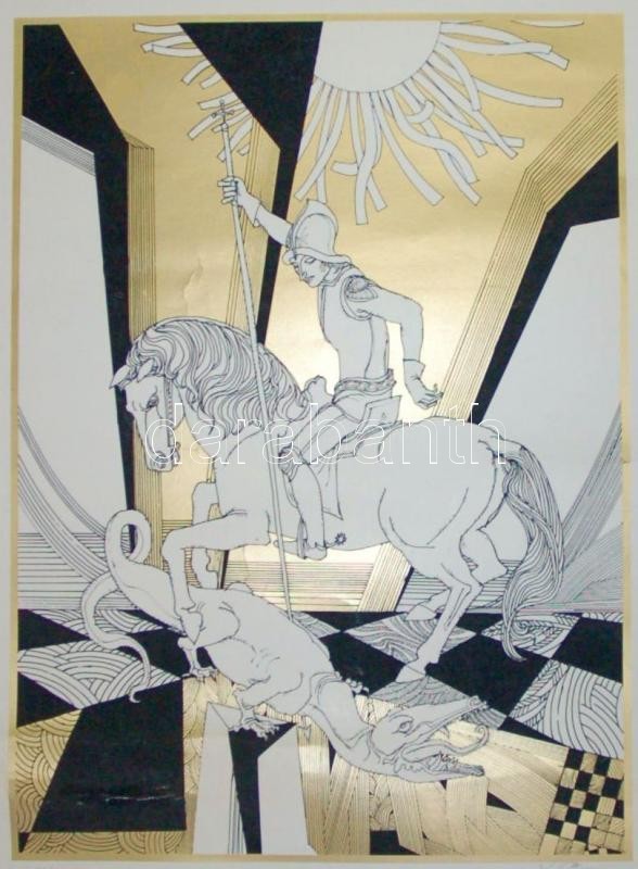 Szász Endre (1926-2003): Sárkányölő Szent György, szitanyomat, jelzett... https://www.darabanth.com/hu/167-Gyorsarveres/167.0/Festmeny-mutargy-papirregiseg-egyeb/Festmenyek-es-grafikak~500017/Szasz-Endre-1926-2003-Sarkanyolo-Szent-Gyorgy-szitanyomat-jelzett-10040-apro-hibaval-~II546802