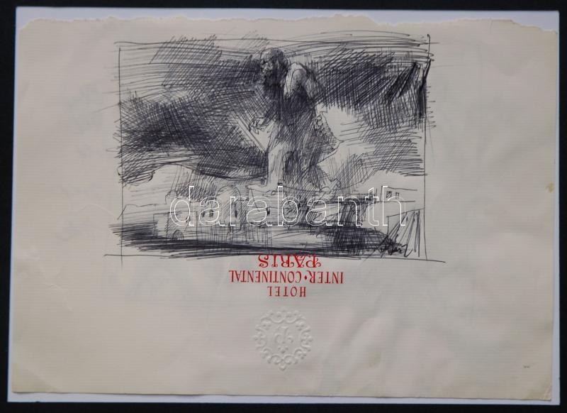 Leírás: Szász Endre jelzéssel: Rabbi a házak fölött, toll, papír, paszpartban, 10×12 cm