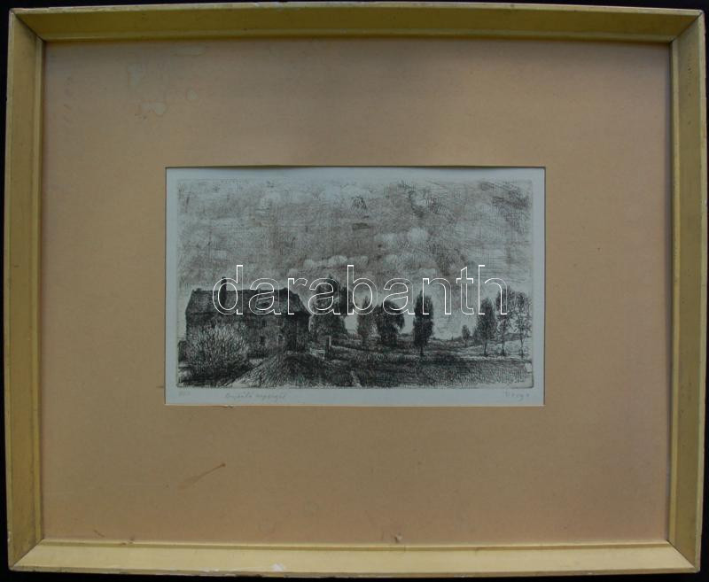 Leírás: Varga jelzéssel: Bujkáló napsugár, rézkarc-papír, keretben, 53x43cm