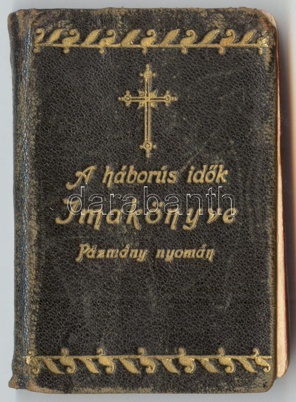 Leírás: A háborús idők imakönyve - Pázmány nyomán. Bp., 1915. Szt. István társ. Aranyozott egészbőr kötésű minikönyv. kötés szétvált