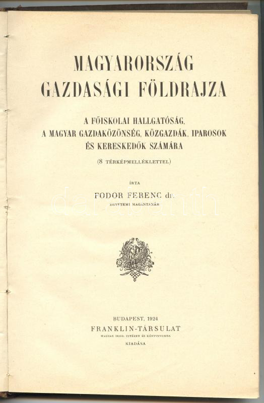 Fodor Ferenc: Magyarország gazdasági földrajza. Bp., 1924. Franklin 23... https://www.darabanth.com/hu/167-Gyorsarveres/167.0/Festmeny-mutargy-papirregiseg-egyeb/Konyvek-Tortenelem~500044/Fodor-Ferenc-Magyarorszag-gazdasagi-foldrajza-Bp-1924-Franklin-238p-plus-7-db-kihajthato-es-~II536016