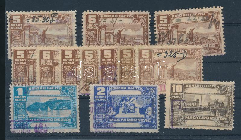 Leírás: 1931 Konzuli illeték bélyeg tétel: 10x 5ARP + 1ARP + 2ARP + 10ARP