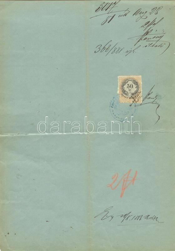 Leírás: 1878 Vadászjegy (12Ft) kézbesítési ívvel, illetékbélyeggel