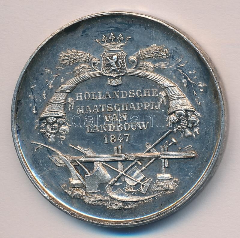 Leírás: Hollandia 1847. "Holland Mezőgazdasági Társaság" ezüstözött díjérem (39mm) második helyezésért T:2