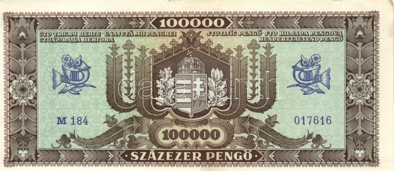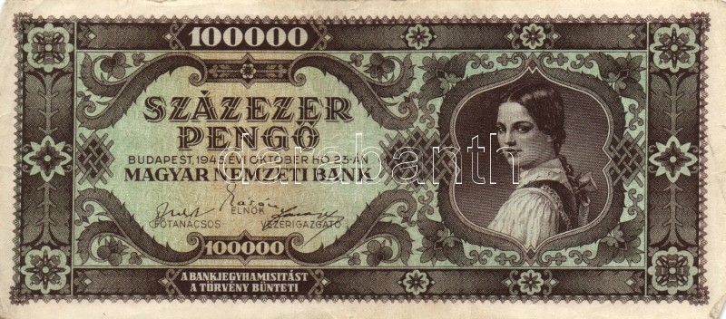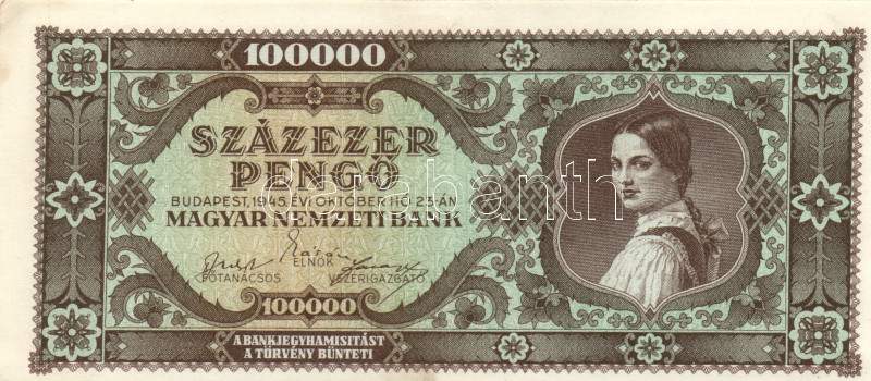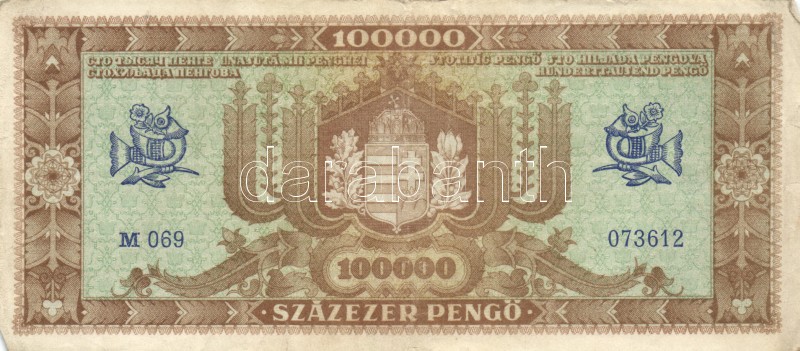 Leírás: 1945. 100.000P (2x) egyik vágáshibás, másik világos hátlapú T:I-,III