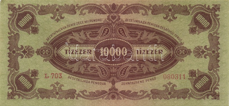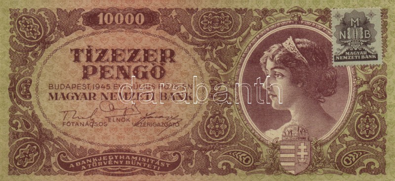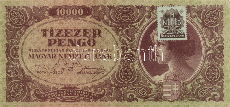 1945. 10.000P (2x) helyesen és hibásan felragasztott bélyeggel T:I-,II https://www.darabanth.com/hu/167-Gyorsarveres/167.0/Numizmatika/Magyar-es-magyar-vonatkozasu-bankjegyek~100008/1945-10000P-2x-helyesen-es-hibasan-felragasztott-belyeggel-TI-II~II560600