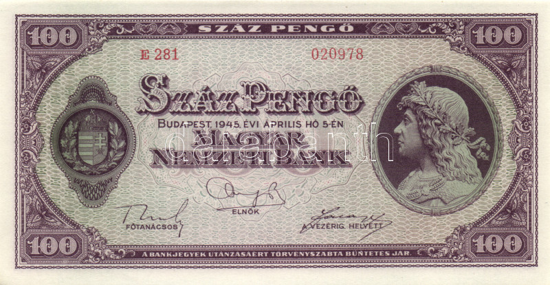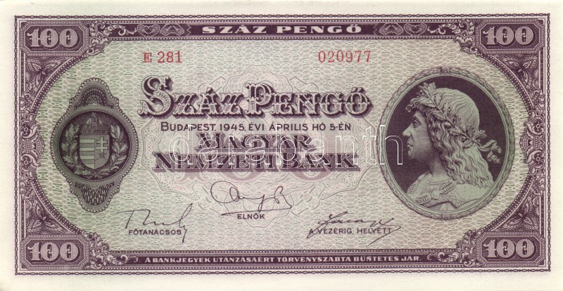 Leírás: 1945. 100P (4x) egymás utáni sorszámmal T:I-(apró sarokhajlás)