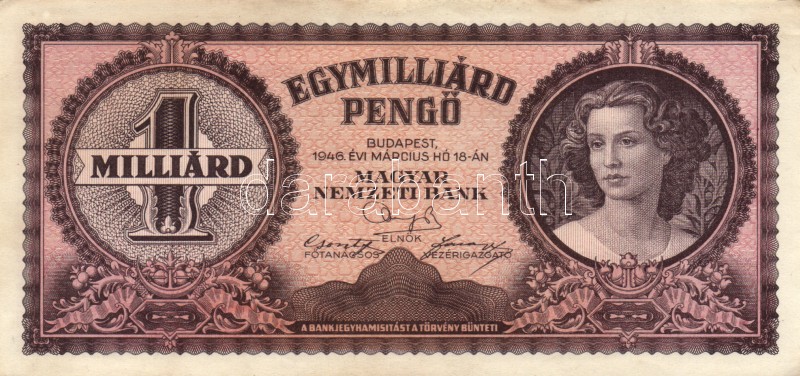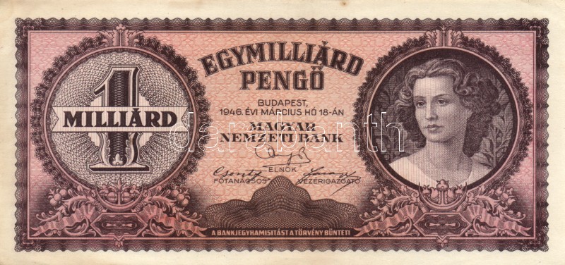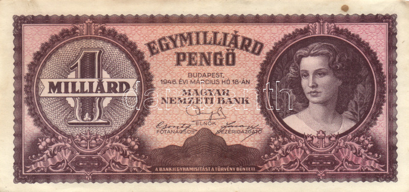 Leírás: 1946. 1.000.000.000P (4x) egymáshoz közeli sorszámmal T:I-,II fo.