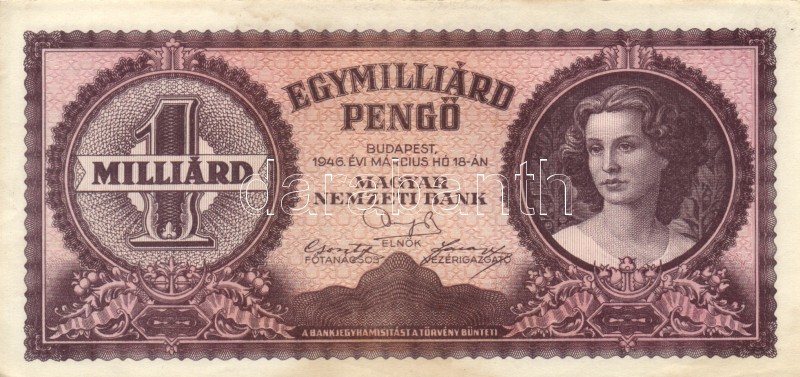 1946. 1.000.000.000P (4x) egymáshoz közeli sorszámmal T:I-,II fo. https://www.darabanth.com/hu/167-Gyorsarveres/167.0/Numizmatika/Magyar-es-magyar-vonatkozasu-bankjegyek~100008/1946-1000000000P-4x-egymashoz-kozeli-sorszammal-TI-II-fo~II560634